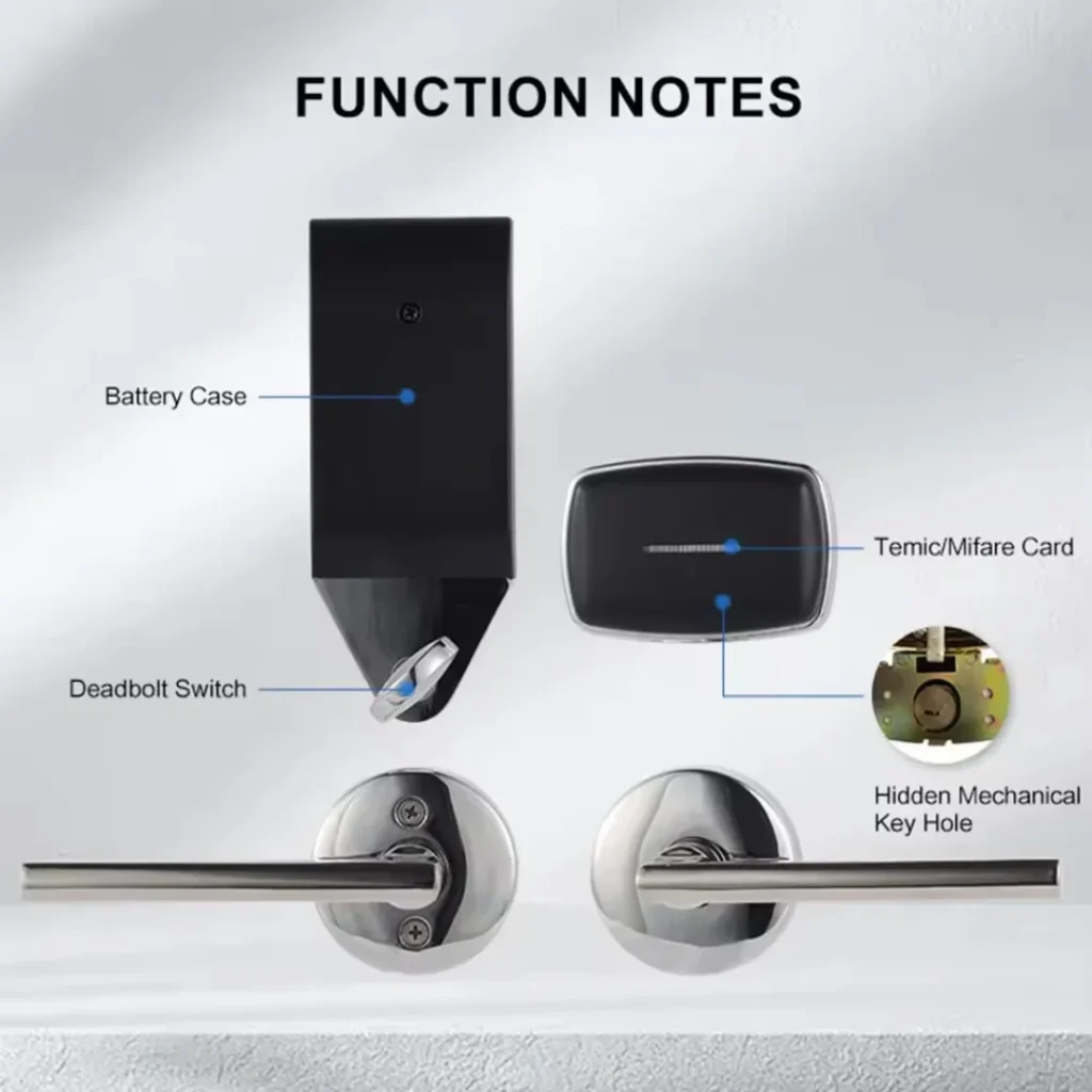 Engineered under the trusted Eston Amenities brand, the Gaoan Split Lock combines RFID technology, mechanical key access, and advanced safety features to offer a smooth and reliable access experience. With CE, FCC, RoHS, and ISO certifications, it guarantees international quality standards and long-term durability.