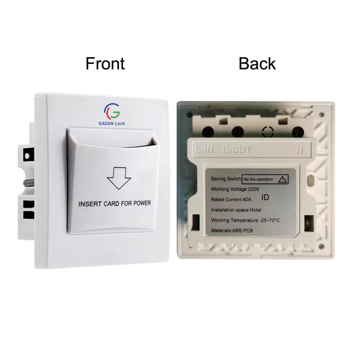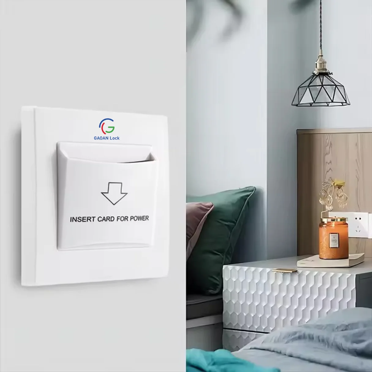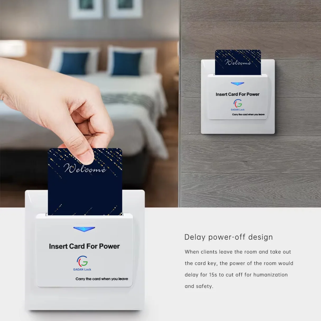 In addition, the device integrates seamlessly with RFID hotel door locks such as the Gaoan Classic RFID Lock, making it a complete access and energy management solution for the hospitality industry.